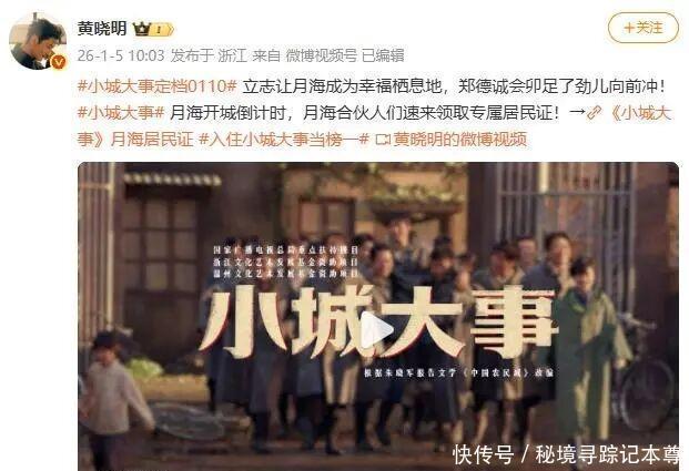 今天,@黄晓明在微博也发布了《小城大事》定档的音信。