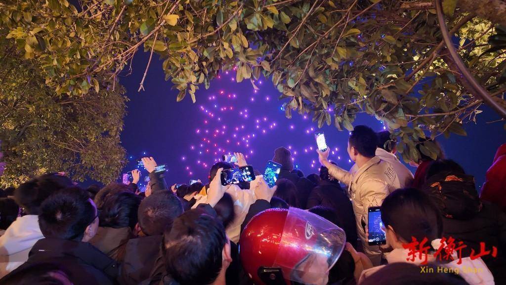 2026年2月18日晚,衡山县衡山渡景区东谈主头攒动、吵杂超卓。1200架无东谈主机腾空而起,以夜空为幕、灯光为笔,在湘江之上演出了一场科技与文化和会的光影大秀,数万市民搭客与云表网友共同见证这场新春视觉盛宴。
