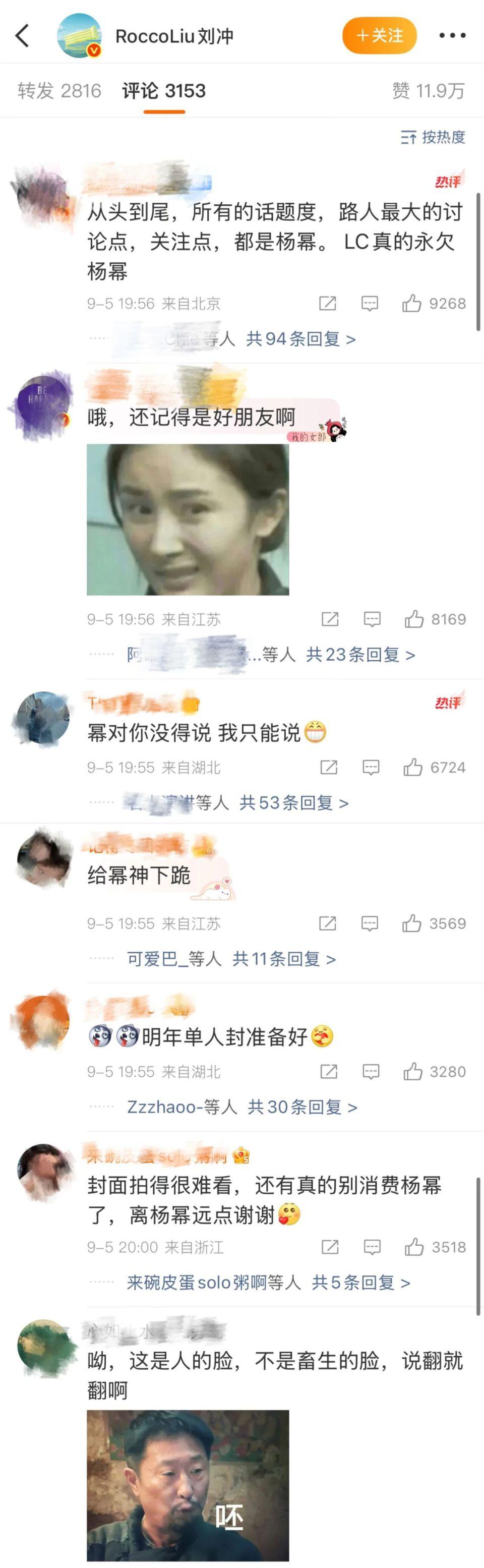 该条微博的挑剔高达 3000+,绝大多量王人是杨幂粉丝的吐槽,认为“刘冲背刺杨幂”,口口声声的说和杨幂是好一又友,但却不给她安排好位置。