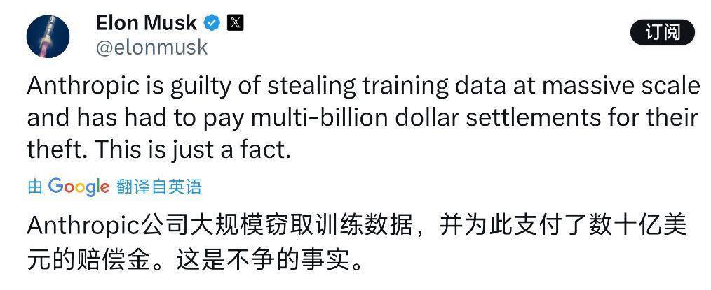 这种指控也让东说念主嗅觉是“贼喊捉贼”。Anthropic自己有过“窃取数据”的“黑历史”:2025年9月,Anthropic 因大规模从LibGen、PiLiMi等盗版网站积恶下载超700万本受版权保护的史籍,并使用这些盗版册本考试AI模子,被动向以作者安德里亚・巴茨(Andrea Bartz)为首的世界作者集体支付了15亿好意思元妥协金。正如马斯克所说,“这是不争的事实。”